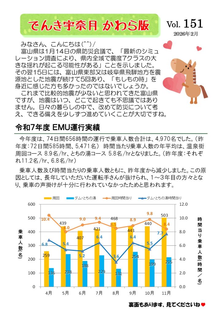 お知らせ, かわら版, 低速電気バスEMU, 活動報告 | 2026.01.27